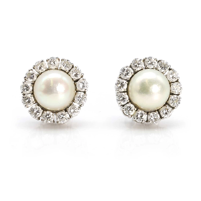 (Image: Cultured pearl and diamond stud earrings. Sold for £700 plus fees) |