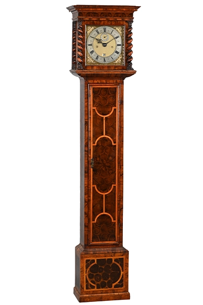 Early longcase clocks by leading London makers such as Ahaseurus Fromanteel, Edward East, Joseph Knibb, Thomas Tompion and William Clement are very highly prized amongst collectors.